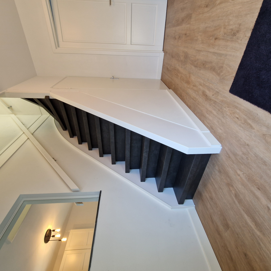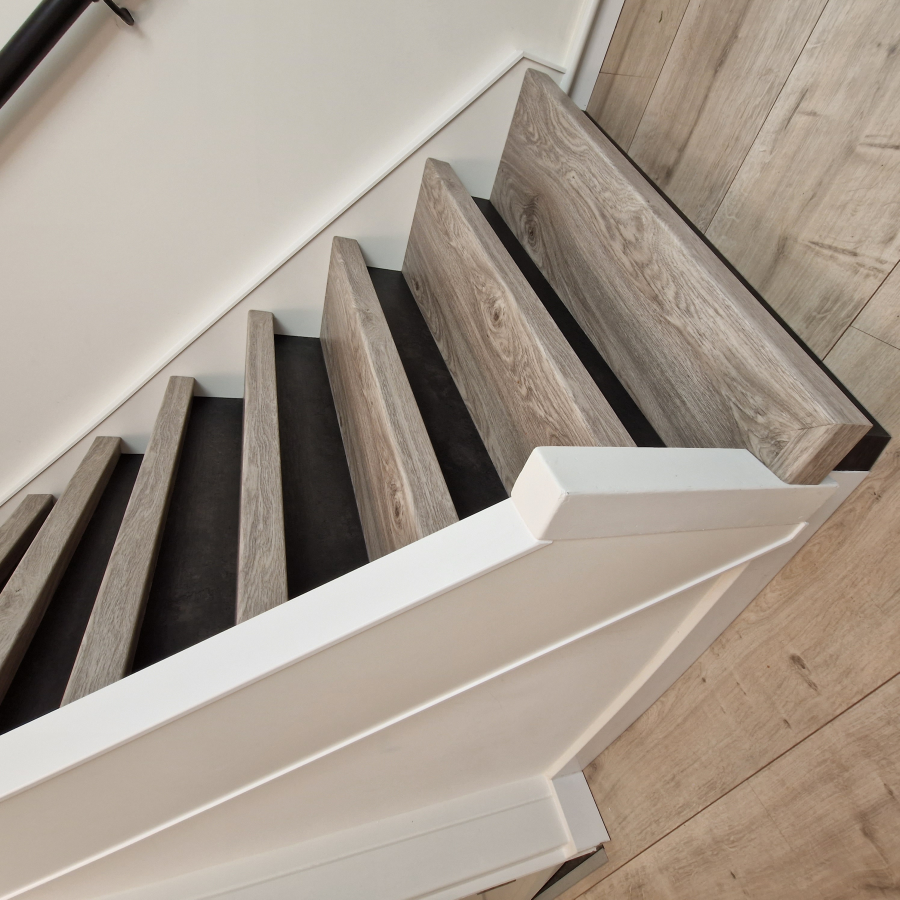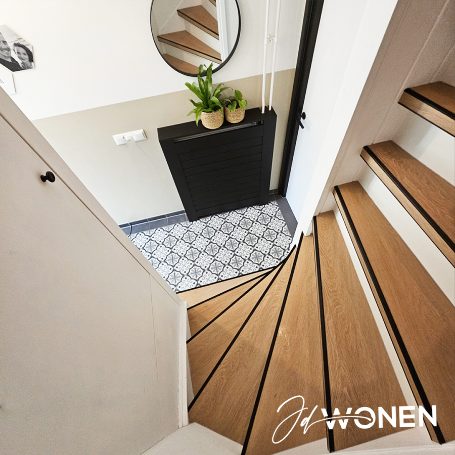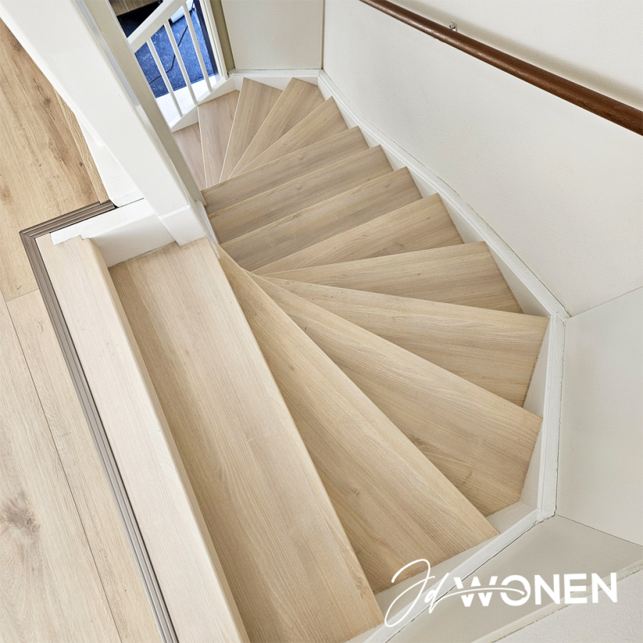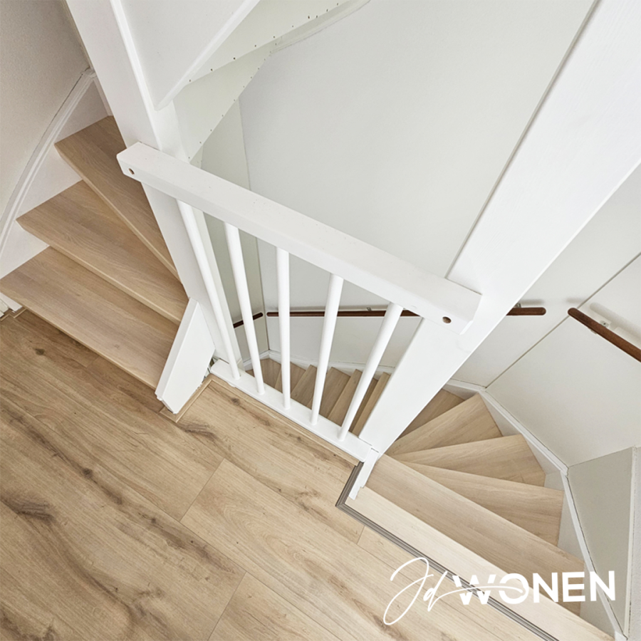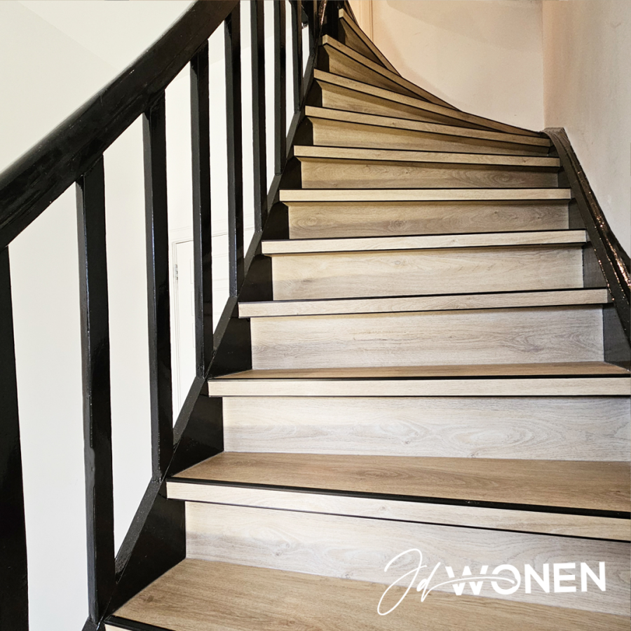 JDwonen, Sterk in interieurafwerking en onderhoud.Een trap is niet zomaar een doorgang tussen verdiepingen – het is een blikvanger in je interieur. Met onze hoogwaardige traprenovaties met PVC geef je jouw trap een compleet nieuwe uitstraling, zonder hak- en breekwerk en waarbij de constructie van de trap volledig intact blijft.