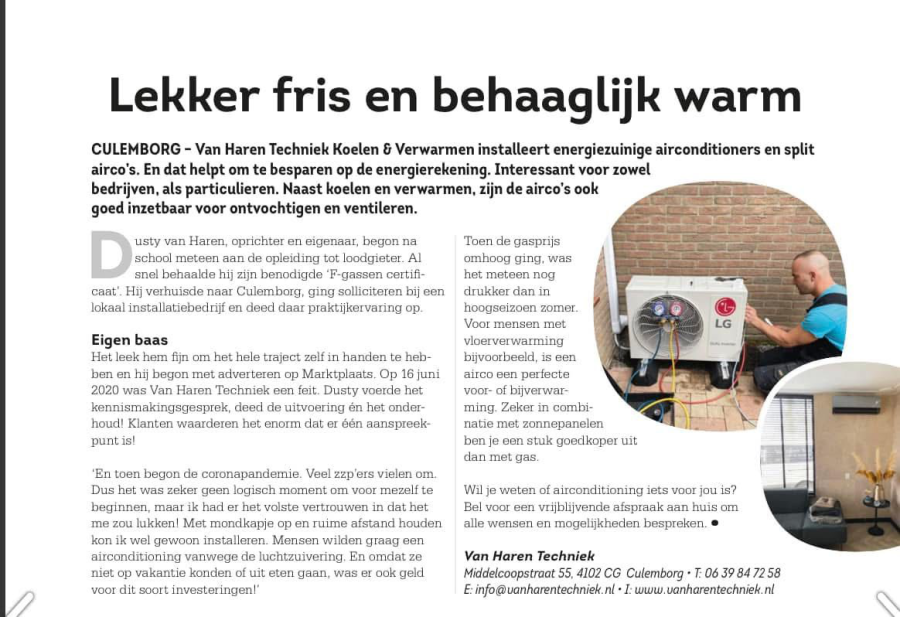 Van Haren Techniek – Koelen & Verwarmen met airco’s is een bedrijf gevestigd in Culemborg (dicht bij Utrecht in de buurt). Wij zijn gespecialiseerd in airco montage, onderhoud uitvoeren voor airco’s en storingen oplossen van airco’s. Met meer dan 5+ jaar ervaring met het monteren van airco’s kunnen wij u een professionele en perfecte montage garanderen. Daarom kunnen wij ook de volgende usp’s aanbieden:Snelheid van inplannen